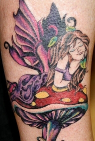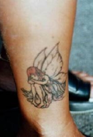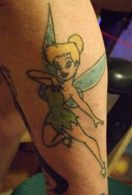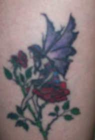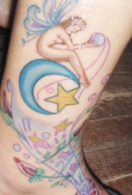 腿部卡通童话精灵玫瑰月亮星星纹身图案