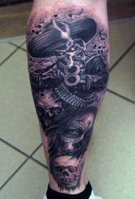 小腿墨西哥风骷髅士兵纹身图案