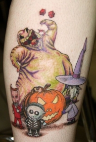 小腿卡通彩色各种圣诞节幽灵纹身图案