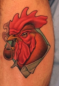 抽烟的公鸡彩色纹身图案