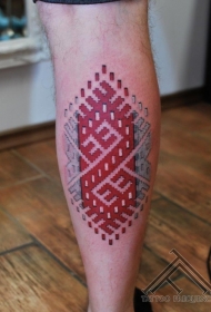 小腿黑色漂亮的身狮子头与圆纹身图案