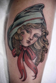 小腿肖像风格彩色的女人与狐狸花朵纹身图案