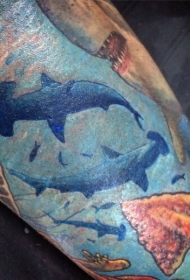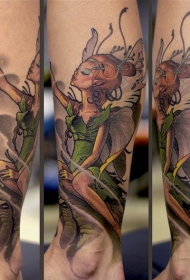 小腿漂亮的彩色插画风格幻想精灵纹身图案