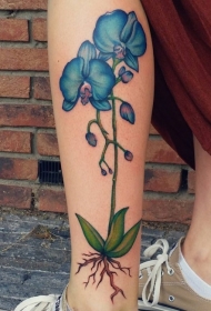 新传统风格彩色美丽的玫瑰腿部纹身图案