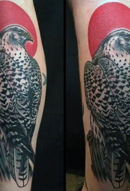 小腿非常漂亮的彩色大鹰和太阳纹身图案