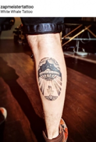 建筑物纹身 男生腿上黑色的建筑物纹身图片