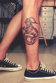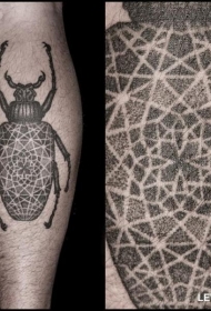 小腿黑色神秘无毛猫与几何眼睛纹身图案