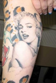 小腿写实黑灰性感玛丽莲梦露肖像纹身图案