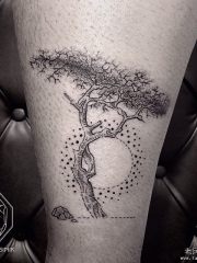 小腿上漂亮的个性的长胡子的女子纹身图片