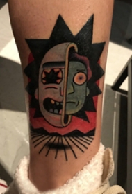 欧美小腿纹身 男生小腿上黑色的人物肖像纹身图片