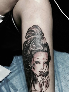 小腿上可爱的黑色蝙蝠侠纹身图片