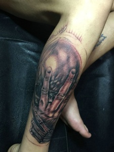 包小腿黑灰鲤鱼纹身刺青男人味十足