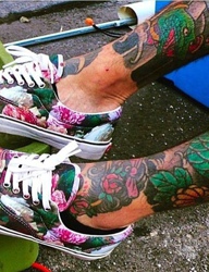 毫无违和感的鞋子对应小腿上的花样刺青
