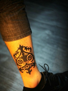 遮盖着旧伤疤的小腿图腾纹身
