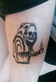 纹身点刺技巧 男生小腿上黑色的骷髅纹身图片