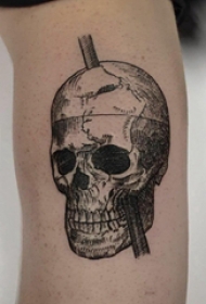 点刺纹身 男生小腿上黑色的骷髅纹身图片