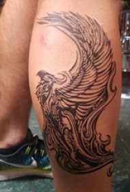 简单线条纹身 男生小腿上黑色的凤凰纹身图片