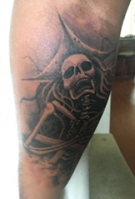 骷髅纹身 男生小腿上骷髅头纹身图片