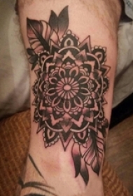 纹身菊花图案 男生小腿上菊花纹身图案