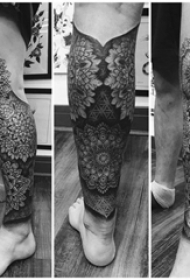 纹身黑色 男生小腿上黑色的梵花纹身图片
