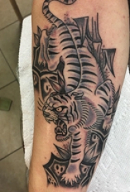 欧美小腿纹身 男生小腿上黑色的老虎纹身图片