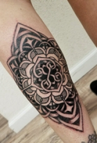 梵花纹身 男生小腿上黑色的梵花纹身图片