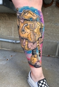 男生小腿上彩绘几何简单线条卡通机器人纹身图片
