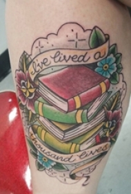 女生小腿上彩绘水彩素描创意文艺书本纹身图片