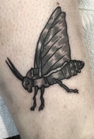 男生小腿上黑灰素描点刺技巧创意昆虫纹身图片