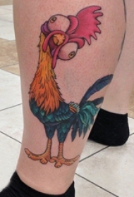男生小腿上彩绘水彩素描创意有趣公鸡纹身图片