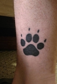 男生小腿上黑色轮廓创意俏皮可爱狗爪纹身图片
