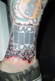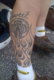 小腿黑色恶魔男子和锋利的枪纹身图案