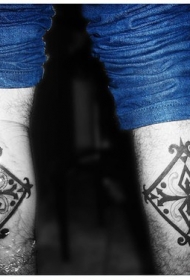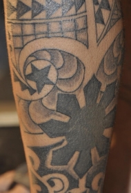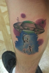 男生小腿上彩绘技巧几何线条飞碟纹身图片
