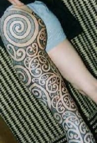小腿写实蓝色苏格兰花纹撕皮纹身图案