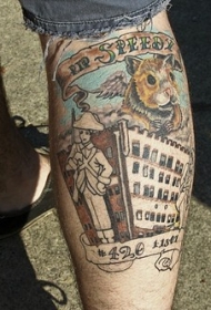 腿部彩色猫头鹰与骷髅纹身图片