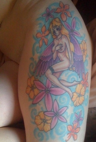 腿部彩色裸体仙女纹身图案