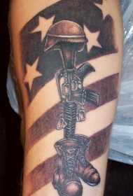 腿部棕色陆军手枪纪念纹身图案