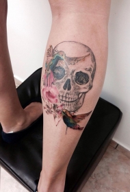 腿部水彩骷髅纹身图案