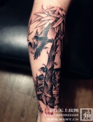 水墨风格腿部竹子纹身