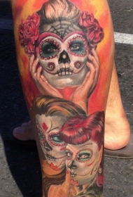 腿部彩色迷人的圣死女孩纹身