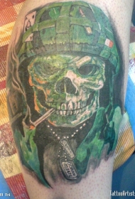 腿部彩色军事骷髅纹身图案