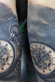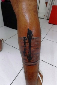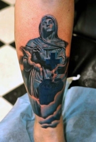 腿部黑色雨季云纪念下的墓碑刻字纹身