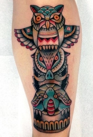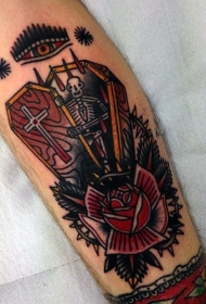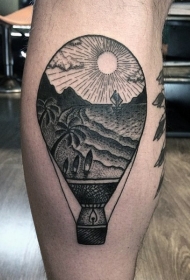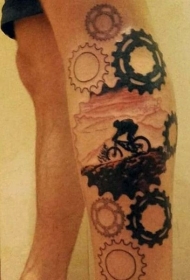 腿部彩色卡通飞行火箭与催眠装饰纹身