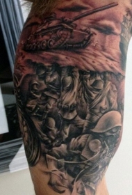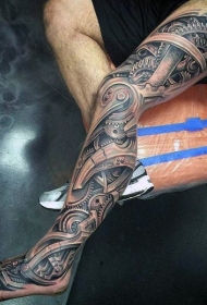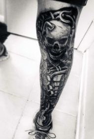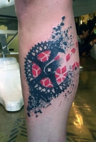 腿部彩色血腥破碎的罗马战士头盔纹身