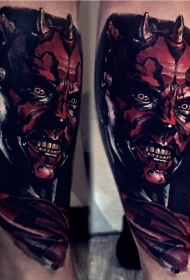 腿部彩色C3PO程式化恶魔的狼头盔纹身