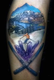 腿部全新学校风格的彩色大鲸鱼纹身图片