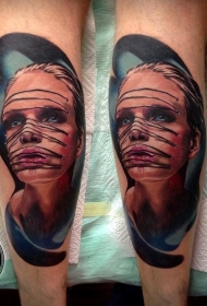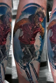 腿部现代传统风格的血腥鲨鱼纹身图片