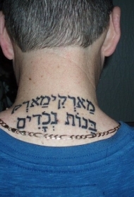 男人脖子上的希伯来字符纹身图案