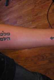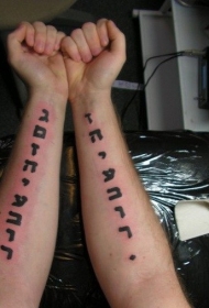 手臂黑色希伯来字符纹身图案