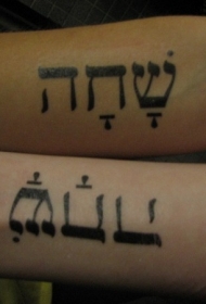 情侣黑色希伯来字符纹身图案